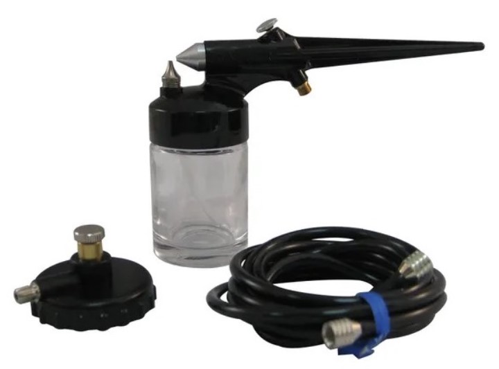 Ulkosekoitteinen yksivaiheruisku. Yksinkertainen mutta tehokas ruisku kaikenkokoisten pintojen tasaiseen peittämiseen. Ei sovellu tarkkuustyöskentelyyn. Jäljen leveys: 2 - 5 cm. Suihkun leveyttä voi säätää hieman ruiskun edessä olevasta suuttimesta. Käyttöalueet: koulu- ja askartelu käyttö, malli- ja tekstiili -maalaus. Pakkaus sisältää: ruiskun (värikuppi 22 ml), ilmaletkun ja paineventtiilin ponnekaasupulloa varten. (Ponnekaasupulloa käytettäessä ei tarvita lisäosia, kompressoria varten mutteri 50-023)