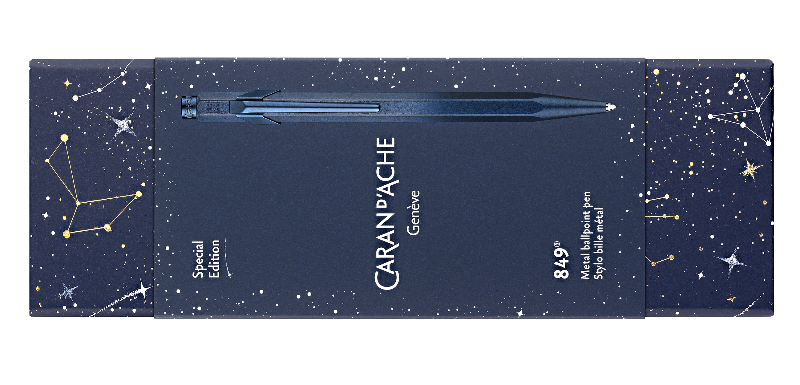 Lumoavaa kosmisuutta Caran d'Achen säihkyvässä mallistossa! Cosmic blue kuulakärkikynä on laadukas, Sveitsissä korkeiden laatuvaatimusten mukaisesti valmistettu kuulakärkikynä, joka kestää aikaa ja sopii vaativallekin kirjoittajalle. Musteen väri musta. Alkuperämaa Sveitsi.