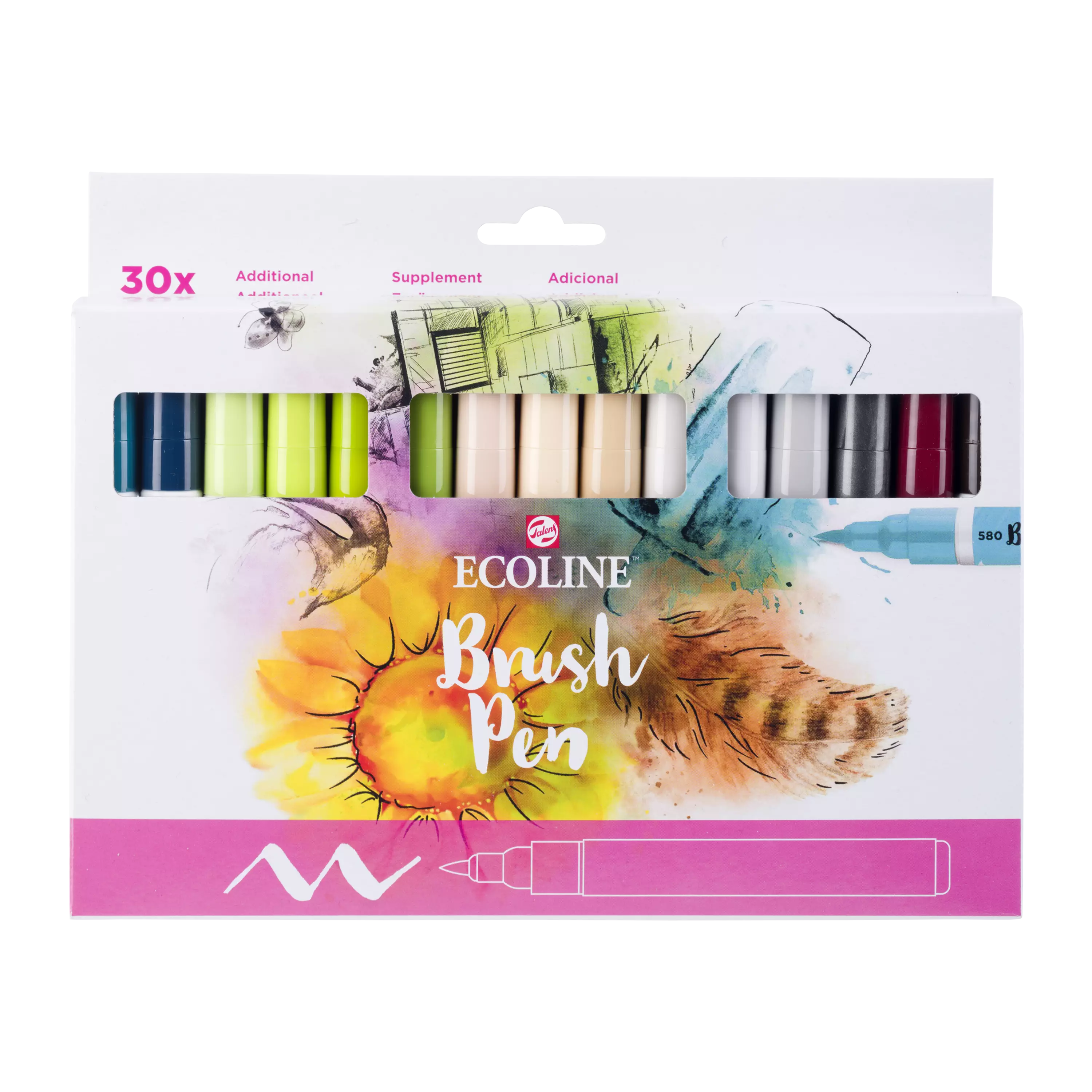 Ecoline sivellinkynät - riitoisat, puhtaat ja voimakkaat sävyt. Käytä aina sopivaa paperia (huopakynälehtiö). Huom! tuote ei ole valonkestävä taiteilijaluokituksen mukaisesti - säilytä työt kansiossa.