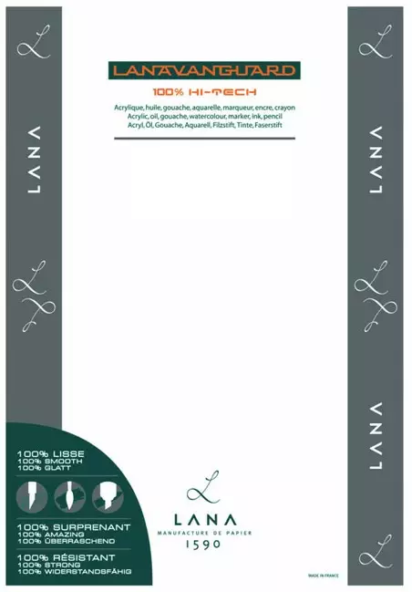 Monikäyttöinen paperi on hohtavan valkoinen, muovimaisen sileä ja erittäin kestävä. Soveltuvuus: akryyli, öljyväri, guassi, tussi ja alkoholitussi, akvarelli, Caran d'Ache liidut. Polypropyleeniä. UV-suojattu. Happovapaa. 200 g/m2. Tehdaspakkaus / tilausmäärä 5 arkkia Myymälässämme mahdollista ostaa arkeittain.