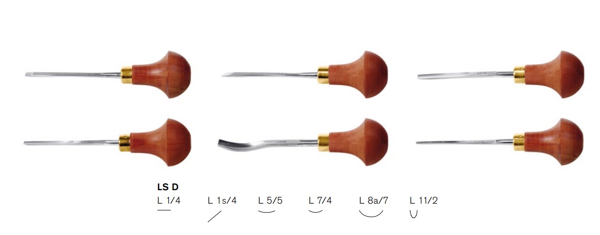 Setti sisältää 6 veistorautaa: L1/4 L1s/4 L5/5 L7/4 L8a/7 L11/2