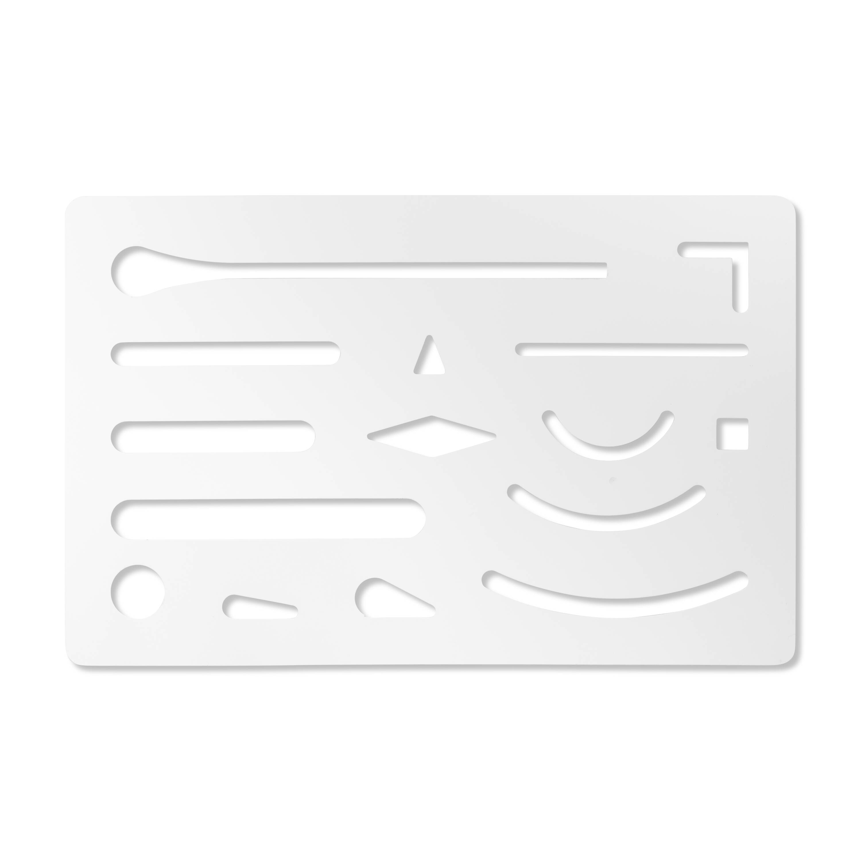 Aristo Eraser Template "pyyhekumin malline" on monipuolinen työkalu, joka on suunniteltu auttamaan tarkkaa pyyhkimistä erilaisissa piirustusprojekteissa. Voit kumittaa tarkasti tietyn muotoisia alueita.