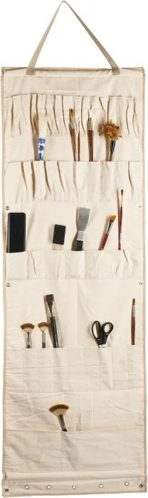 Puuvillainen iso matto 49 x 148 cm siveltimien ja maalausvälineiden säilytykseen. Maton saa lyhennettyä neppareilla.
