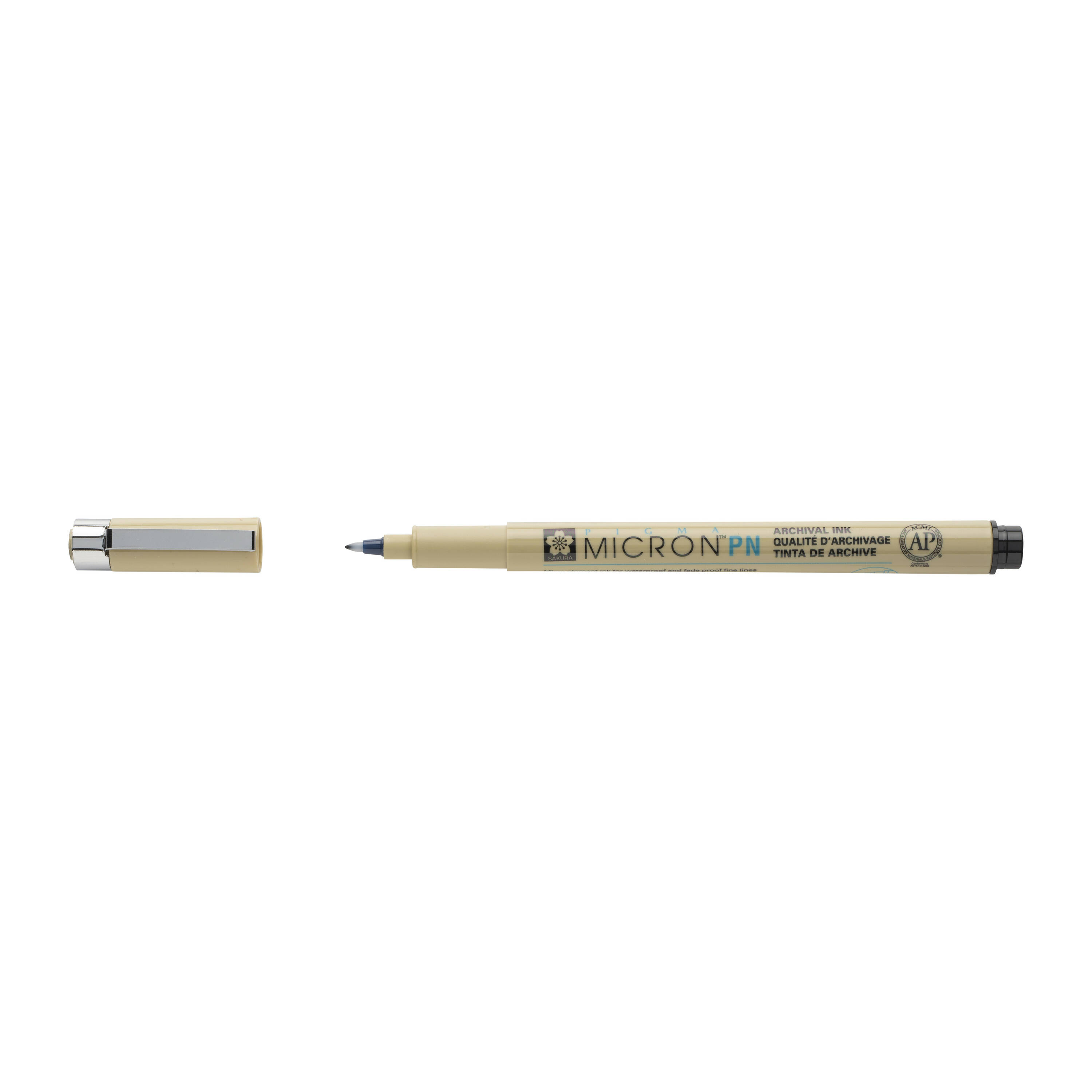 Sakuran PN kynäsarja kirjoittamiseen ja piirtämiseen. Viivanleveys 0,4 - 0,5 mm riippuen kynän asennosta. Ei vuoda paperista helposti läpi.