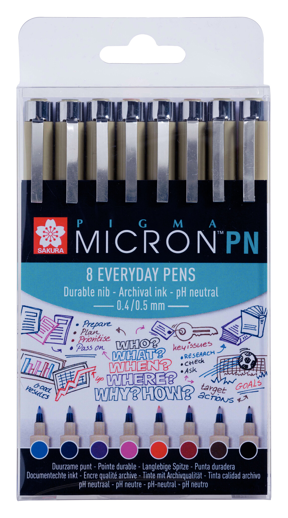 Setissä 8 eri väristä Pigma micron PN tussia. Tehdaspakkaus 6 Pigma PN kynät soveltuvat paremmin kirjoittamiseen kuin perinteiset Sakuran Pigma kynät. Erikoismuotoiltu kärkiosa. Pigmenttipohjainen valonkestävä muste. Erinomainen kynä jokapäiväiseen kirjoittamiseen ja merkintöjen tekemiseen. Kosteudenkestävä.