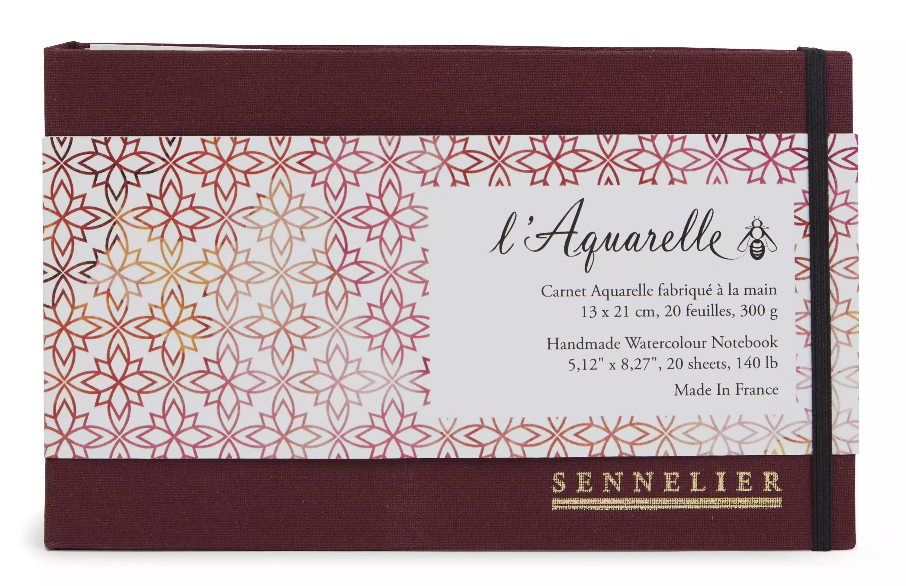 Kirjassa ylellinen punainen pellavapäällysteinen kansi ja sisällä kierre, sulkeutuu kuminauhalla. Käsintehty 300g puolikarkea paperi. 100 % selluloosaa, happovapaa.