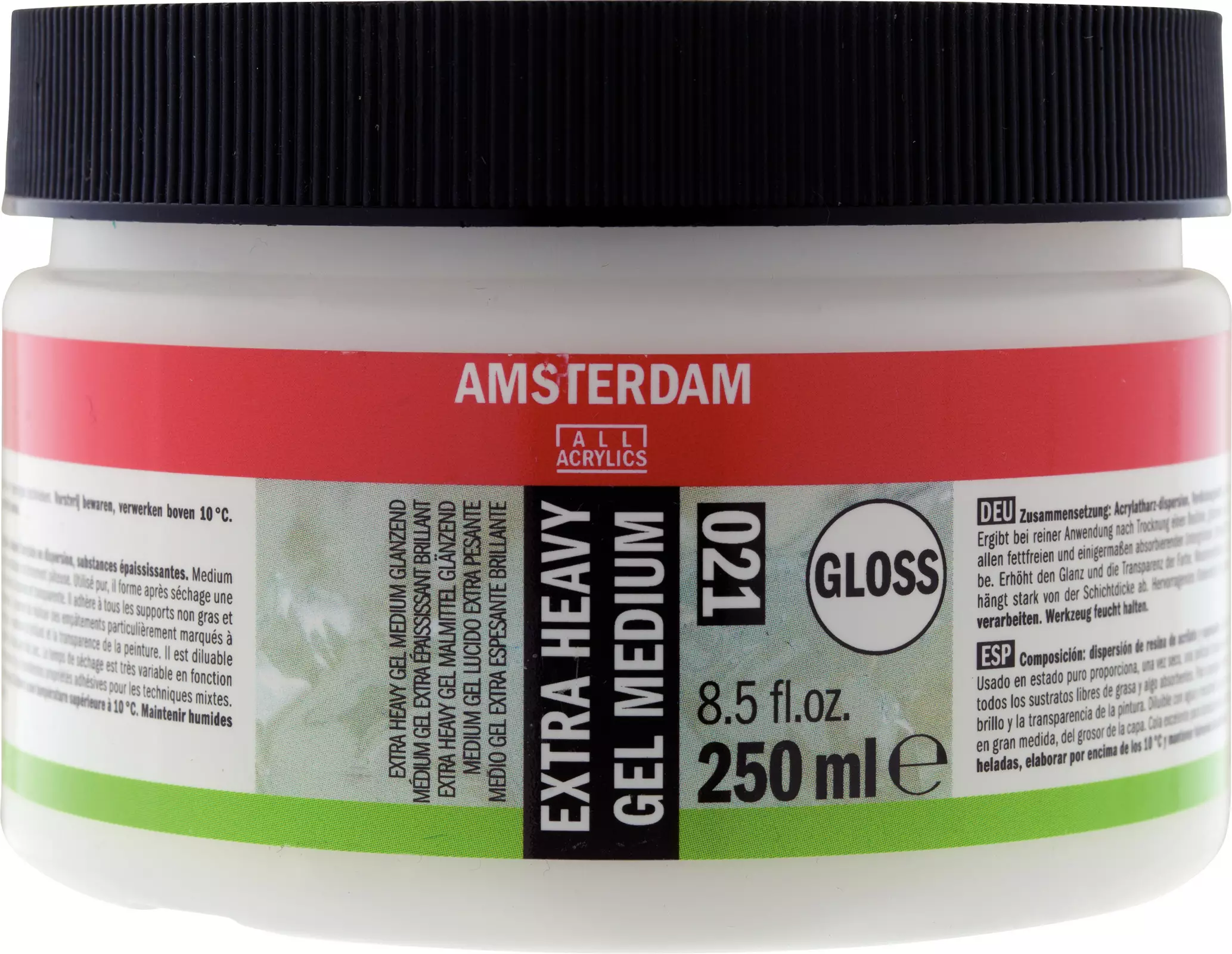 Paksuntaa akryyliväriä huomattavasti. Lisää värin viskositeettia, kiiltoa ja läpikuultavuutta. Koostumus: Akryylihartsin dispersio, sakeutusaineet